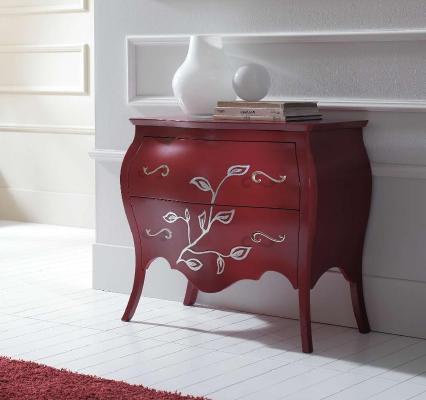 A chest of drawers from the Italian manufacturer at the stilema stand. The model includes two drawers. The frame is made from solid wood. The model proposed in the decoration of lacquer red. Decor - painting with floral motifs. The product is made in a classic style.
