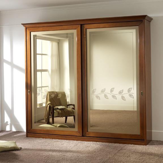 Wardrobe from the Italian manufacturer at the stilema stand. The frame of the presented sliding wardrobe is made from solid wood. The internal drawers are made of plywood. Sliding facades are lined with mirrors. The model is made in classic style.
