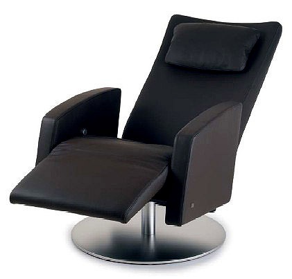 The chair from the German manufacturer Rolf Benz. Chair-the recliner. The backrest and footrest can be adjusted. The internal frame is made of metal. The rotating base of Matt chromed metal. The filler of polyurethane foam. Seat in the form of spring units. Upholstery of textile or leather.