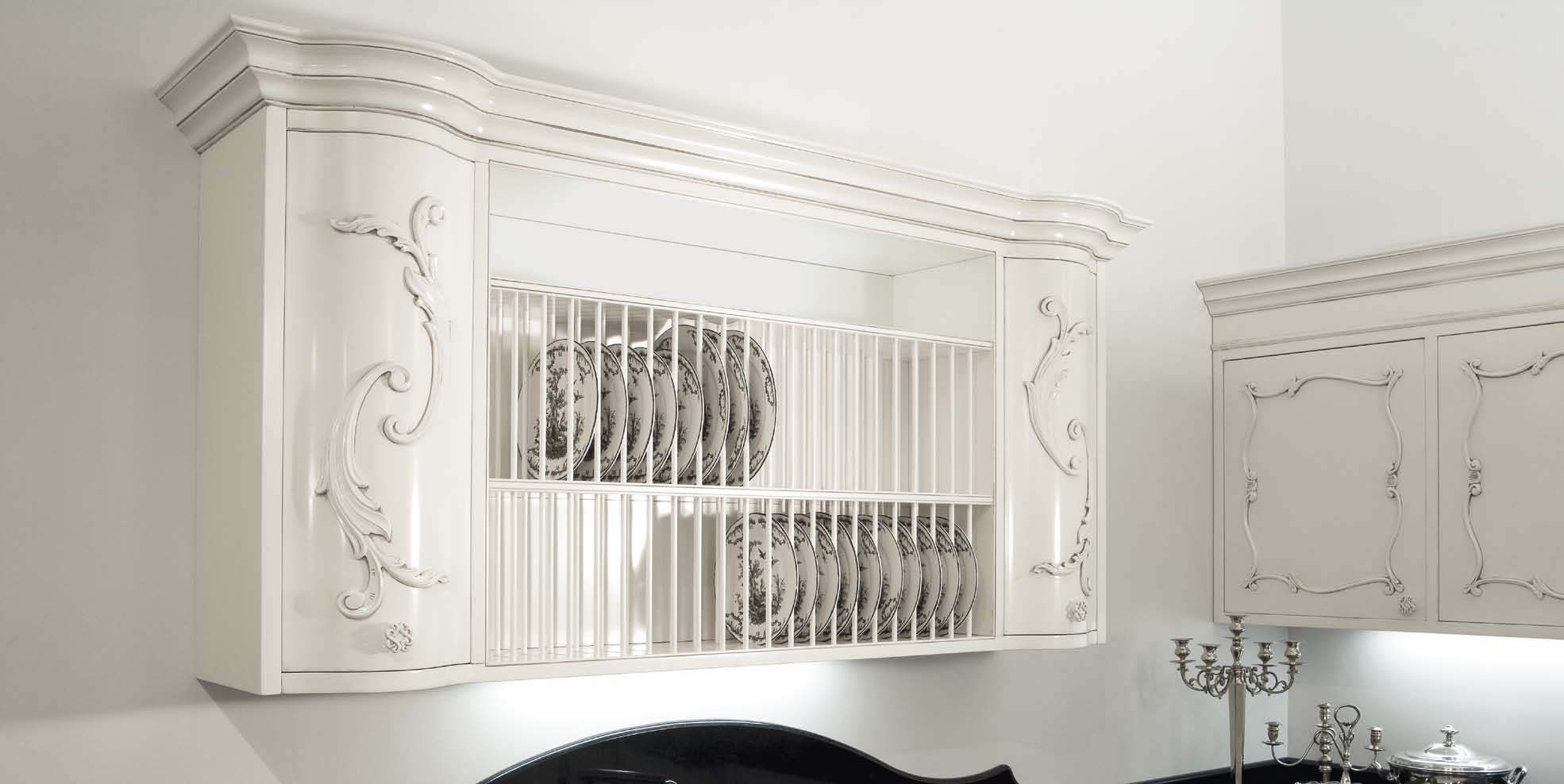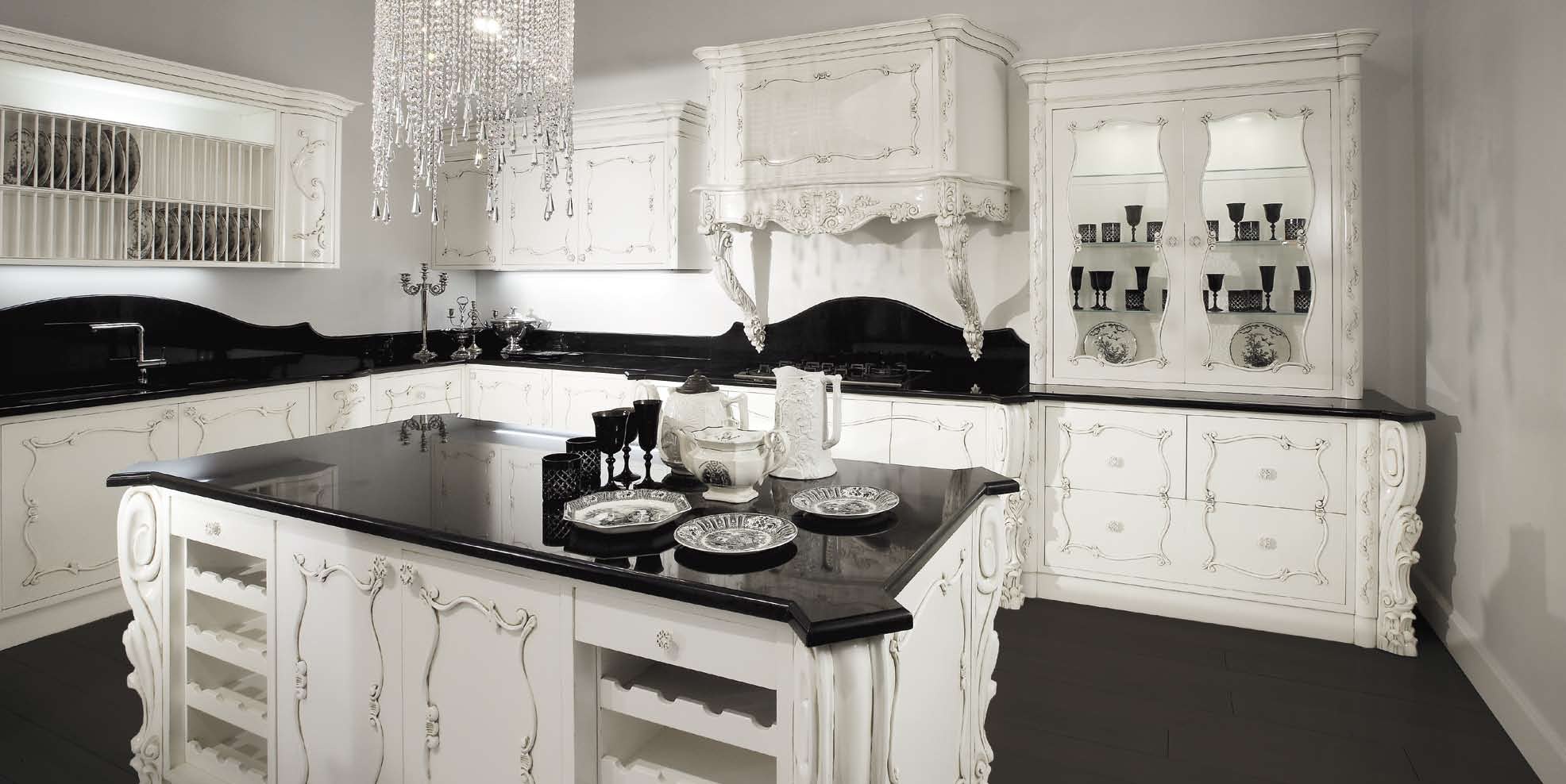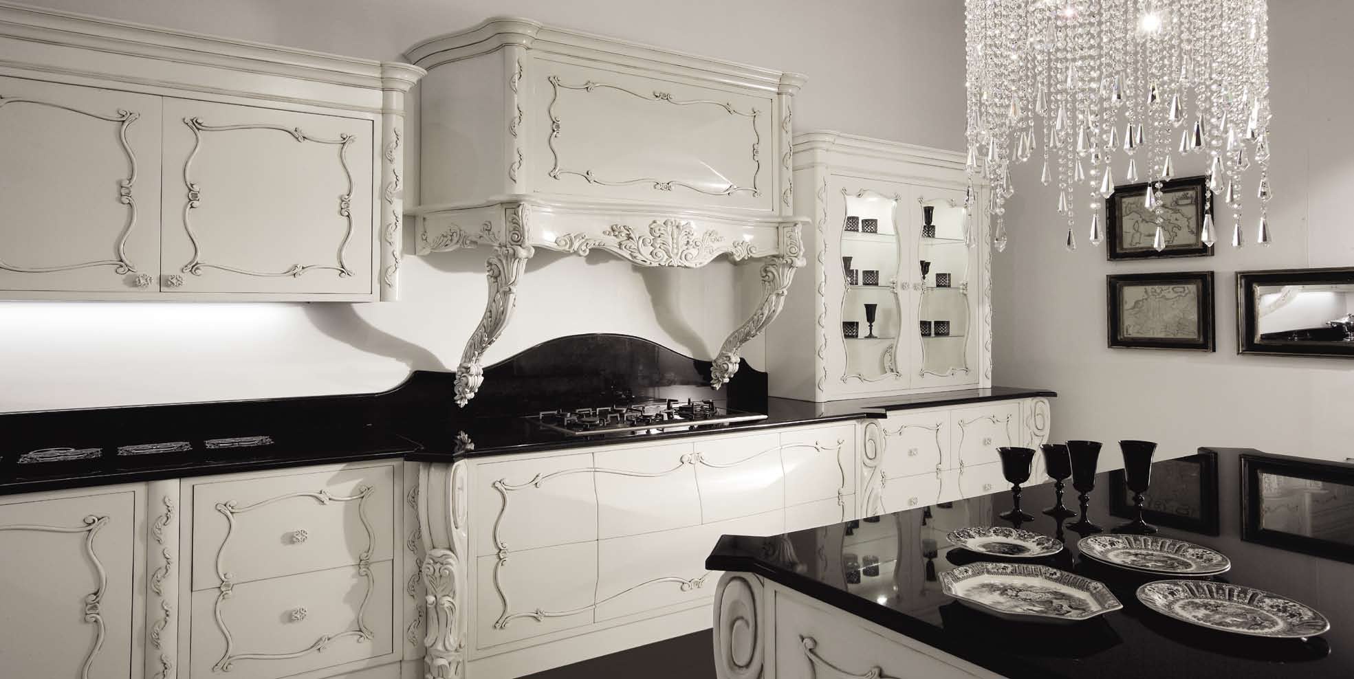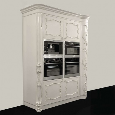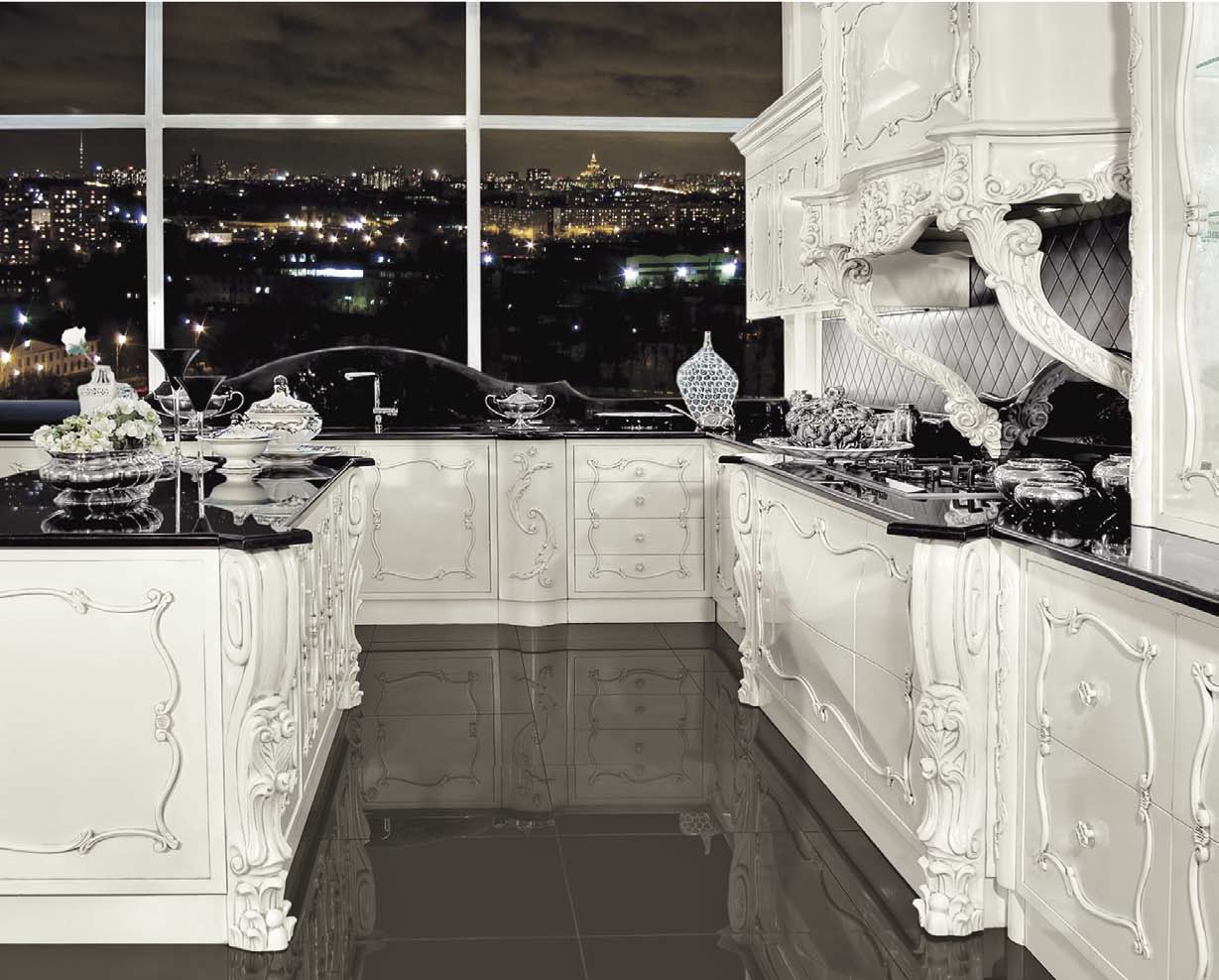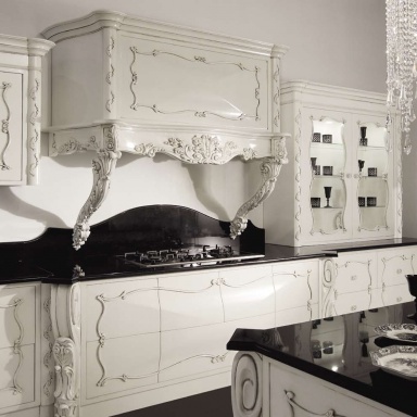 Kitchen set Gio & Gio from the Italian producer Giorgio Piotto. Kitchen furniture made of precious wood, glossy lacquer finish in white. Table top of black marble. Use the exclusive accessories and stylish decorative elements are handmade. The beauty and subtlety of the best combination with high quality.
