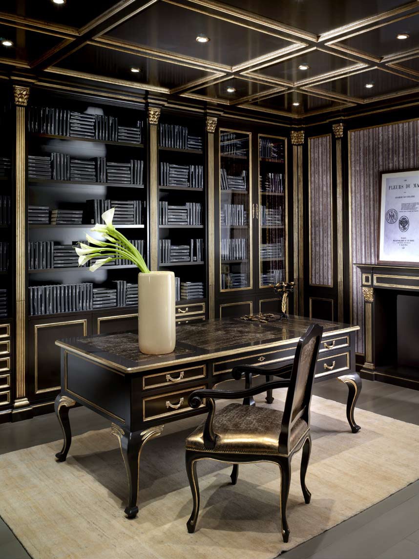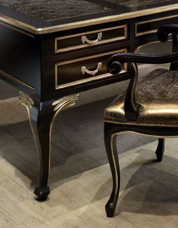 Desk from the Italian producer Giorgio Piotto. High quality model, different creative design and functionality. The frame is made from solid wood, decorated with gold trim. Concise design, clear lines and the extraordinary fineness of finish.