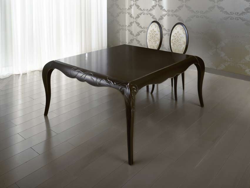 Dining table from the Italian manufacturer Giorgio Piotto. High quality model, different creative design and extraordinary subtleties of the finish. The company offers two models, rectangular and square. The frame is made from solid wood. The table decorations are handmade.