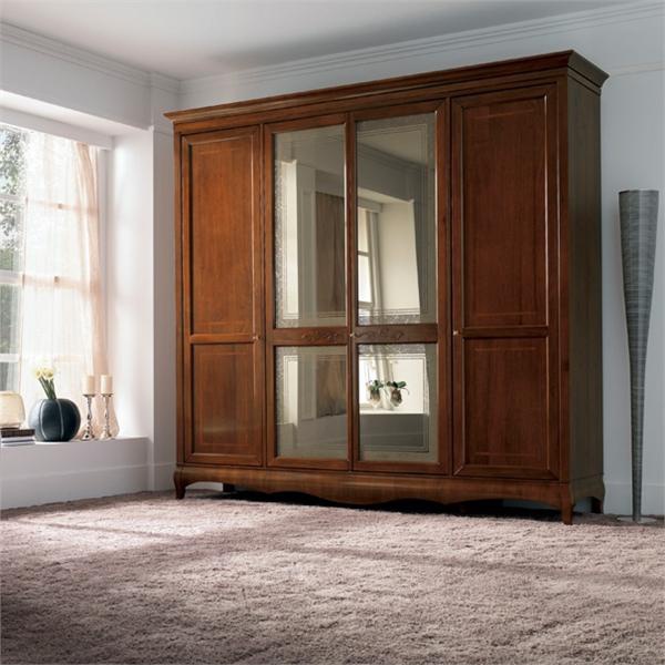 Wardrobe from the Italian manufacturer at the stilema stand. The model consists of four flaps. Two Central sash completely lined with mirrors. Frame and doors made of spruce and walnut. Finish - veneer wood. The drawers are made of plywood. The model is made in classic style. Will perfectly fit the interior of your home.
