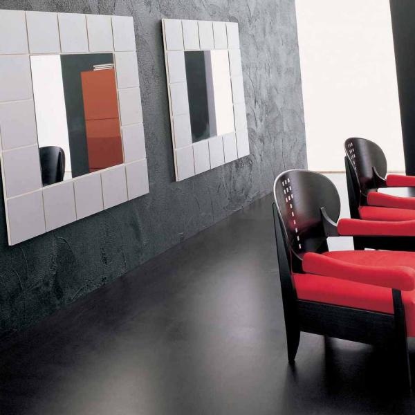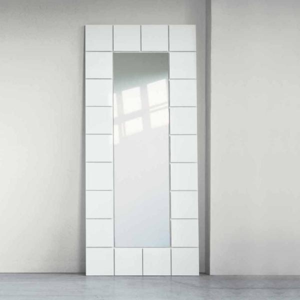 Mirror Quadrus from the Italian manufacturer Alivar. The mirror is in a wide square or rectangular frame made of solid wood, white in colour, ornamented with a square division.