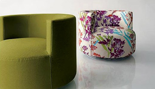 A chair without armrests Chance from Italian manufacturer Saba Italia. Model with a semicircular shape. Fully upholstered with textile. Finish offered a choice from a range of companies. A chair made in a contemporary style. Will perfectly fit the interior of your home.