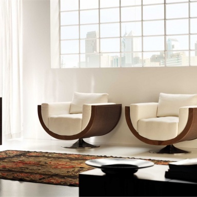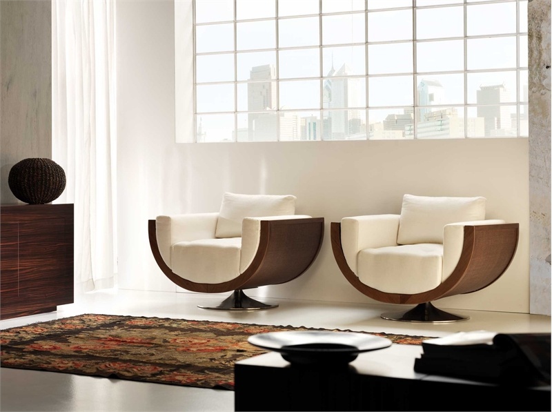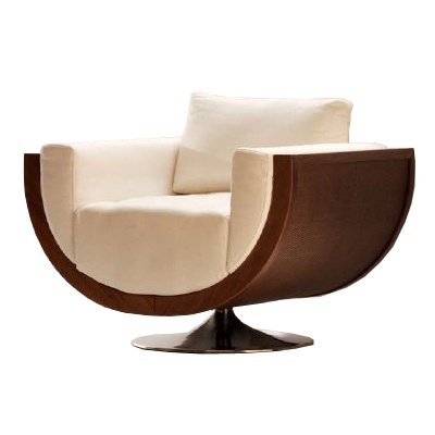 The rotating Wave Metal chair from the Italian manufacturer Rattan wood. Model with a semicircular shape. The base is made of metal. The frame is wooden. Upholstery is available in two options, leather or textiles. Finishes bright and dark colors. The model is made in modern style.