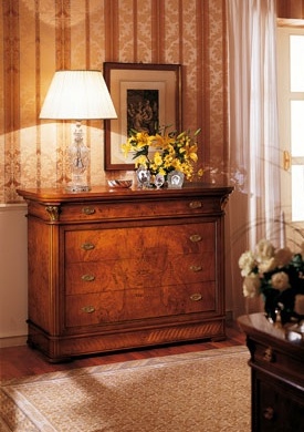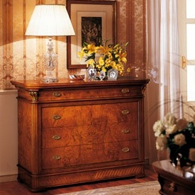 The Antica Brianza Como chest of drawers from Italian manufacturer Minotti Luigi & Benigno. The model consists of several drawers. The frame is made from solid wood. Finish - veneer.Fittings are made of brass. The model is decorated with gold leaf. The product is made in a classic style.