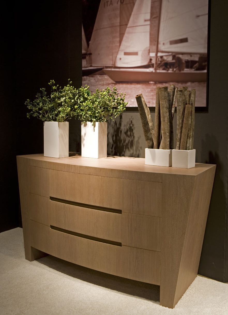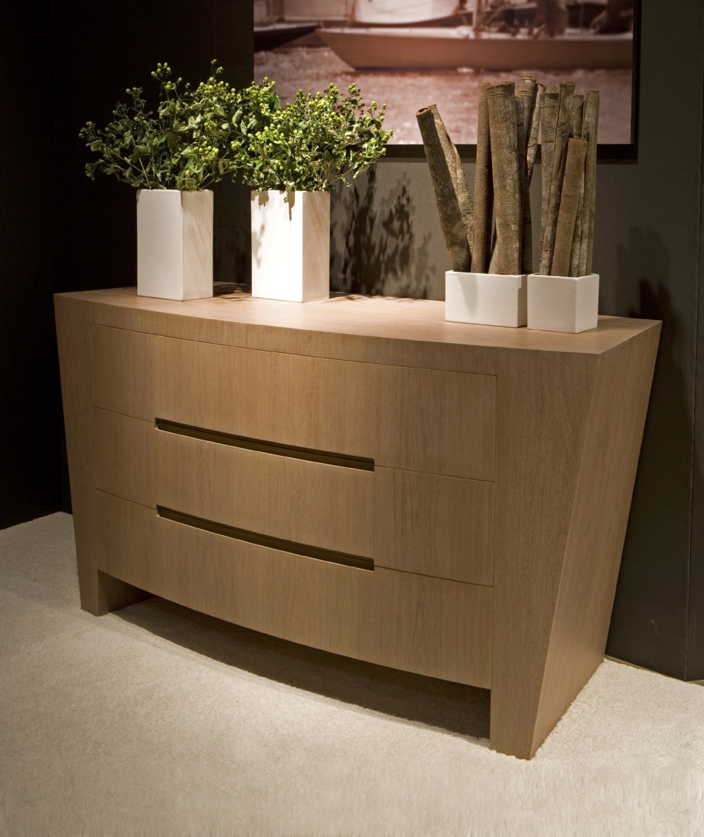 A chest of drawers from Italian manufacturer Annibale Colombo. This dresser is made of wood, in the finishing of Ipe Tabaco veneer. The dresser has three drawers for convenient storage.