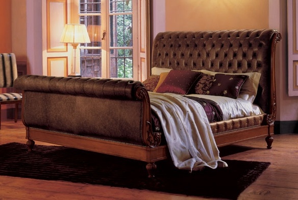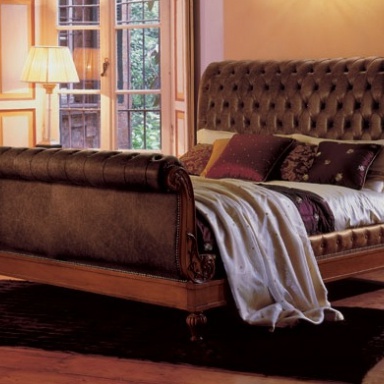 Incanto double bed from Italian manufacturer Minotti Luigi & Benigno. The model attracts attention with an interesting design. Bed with high curved headboard and footboard. The frame is made from solid wood. The upholstery is leather. The ornament serves as a decorative stitch-Capito. The model is made in classic style.