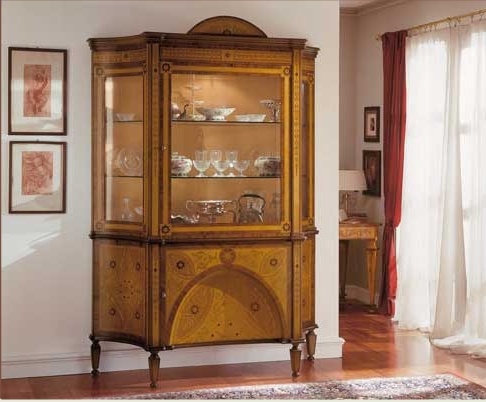 Shop window Vetrina Milano ampio from Italian manufacturer Minotti Luigi & Benigno. Model made of solid wood. Finish - veneer. The facade and shelves made of glass. The model is decorated with decorative carvings. Made showcase in classical style.