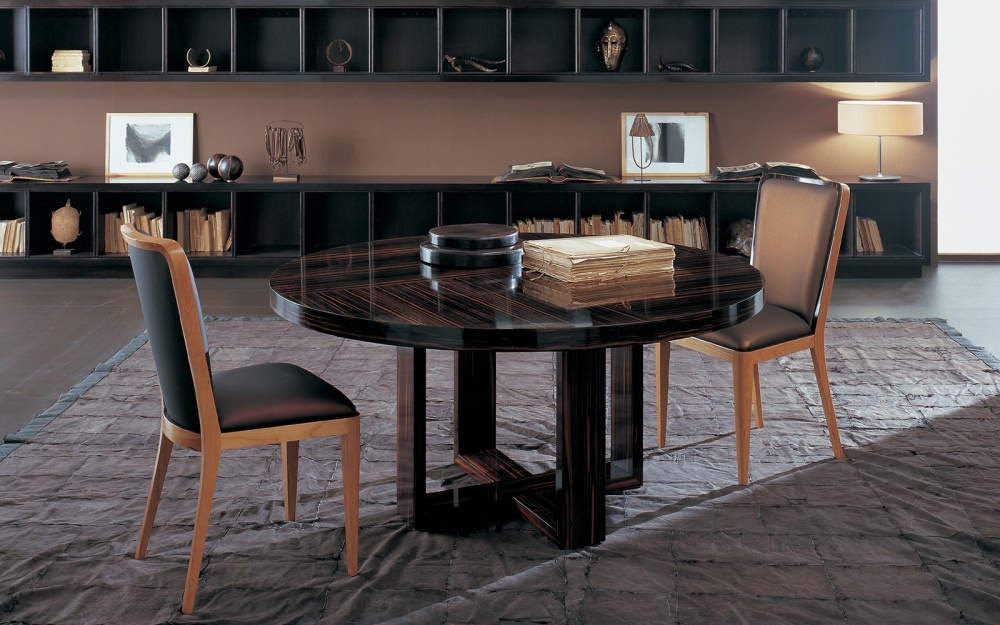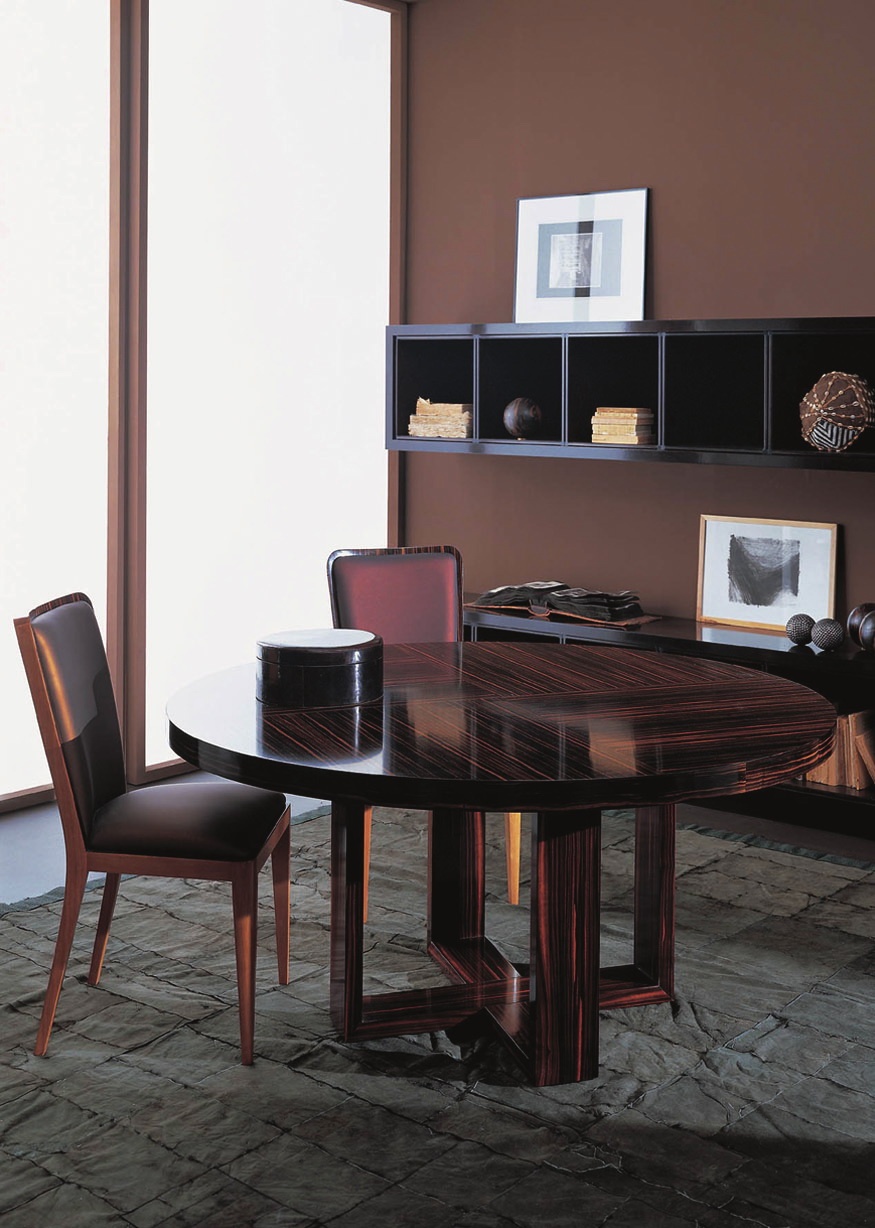 Dining table by Italian manufacturer Annibale Colombo. The table is fully made of ebony. The countertop in this model round. Color of table is brown.