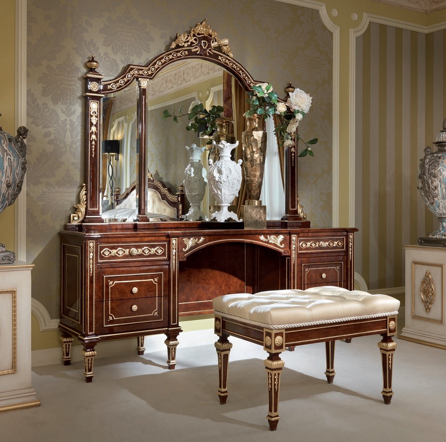 Poof Aida from the Italian manufacturer Turri. The frame is made of solid wood. The handmade decor. Finish - polyester glossy colors of tree root with the effect of the main ha long Bay. Product in a classic style will perfectly complement a bedroom set from this same collection.