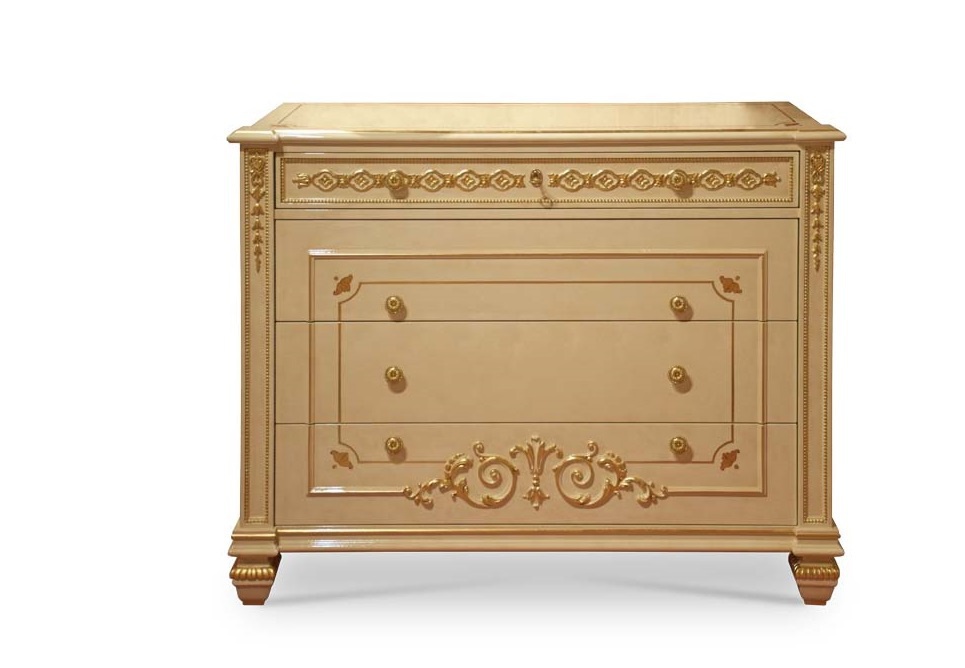 | Description: | Aida a chest of drawers from Italian manufacturer Turri. The frame is made of wood. Finish - gloss lacquer in ivory. Decor - gold leaf, made manually. |