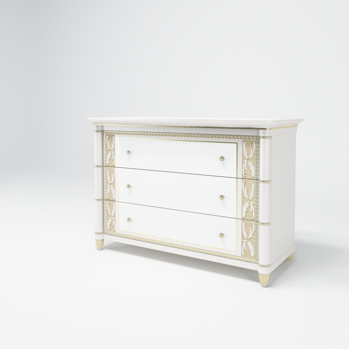 The Hary chest of drawers from Italian manufacturer Turri. The frame is made of wood. The handmade decor in the form of fine threads. Finish - matte corrugated salmon color with gilding. A chest of drawers with 3 drawers made in the classic style.