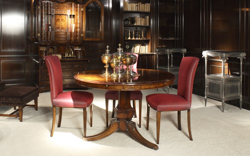 Dining table by Italian manufacturer Annibale Colombo. Frame of table is made of walnut, and the trim from the root of walnut. The color of this model dining table - natural wood color.