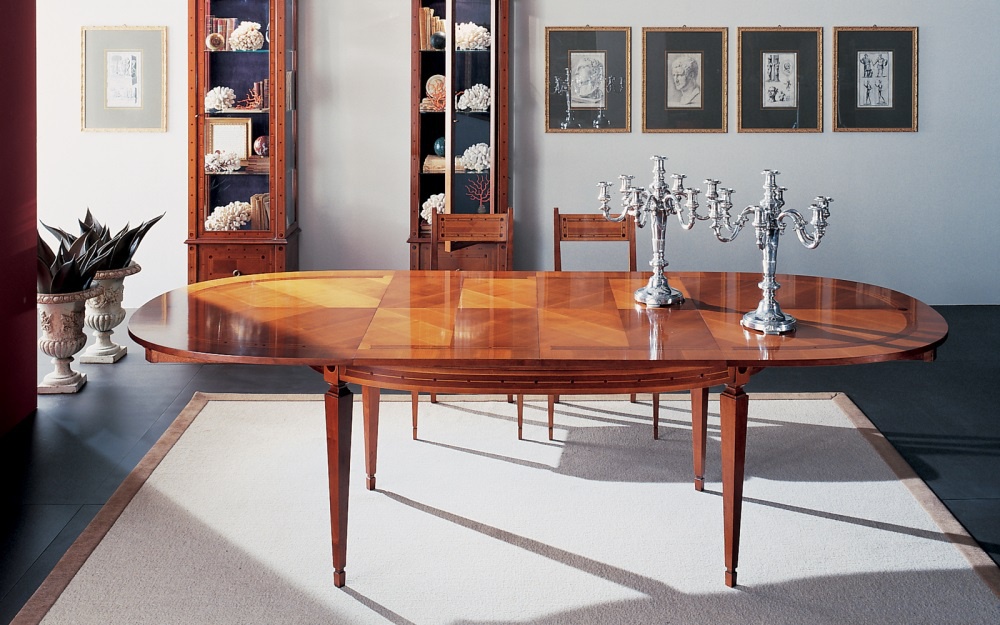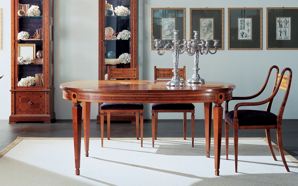 Oval table from the Italian manufacturer Annibale Colombo. The table is fully made from solid cherry, the top is decorated with inlay. Oval table top, which is easily assembled and disassembled. The color of this model of oval table - natural wood color.