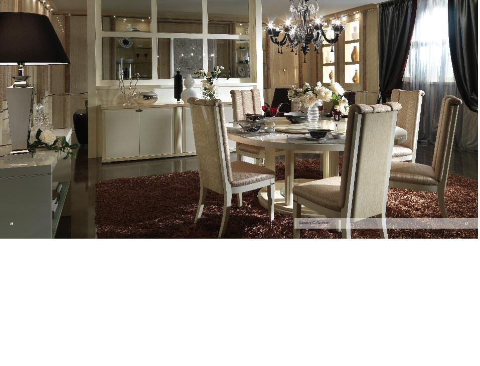 A chair with soft upholstery, from the Italian manufacturer Turri. The frame is made of wood. The handmade decor. Finish - gloss polyester, beige with striped effect and white tamponato effect. Rear foot slightly octonauts ago. The model will perfectly complement the modern interior of the dining room.