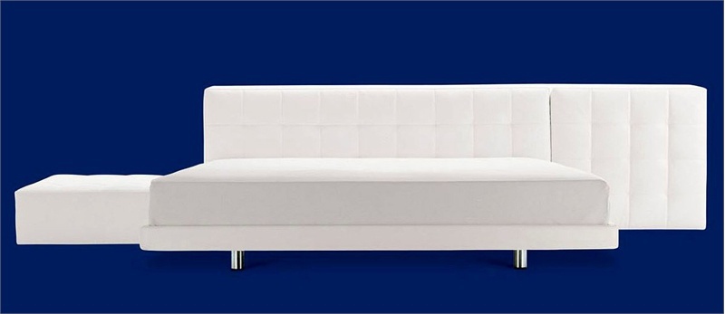 Double bed textile or leather removable upholstery(Zanotta). Width models may vary (on the order) depending on the needs of the customer. The bed is decorated with soft quilted back.