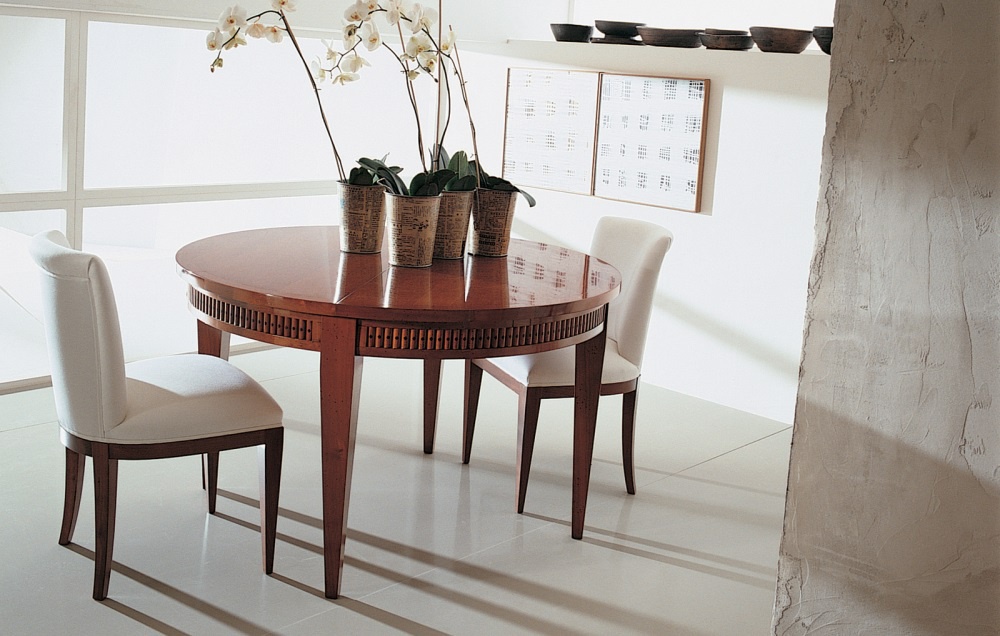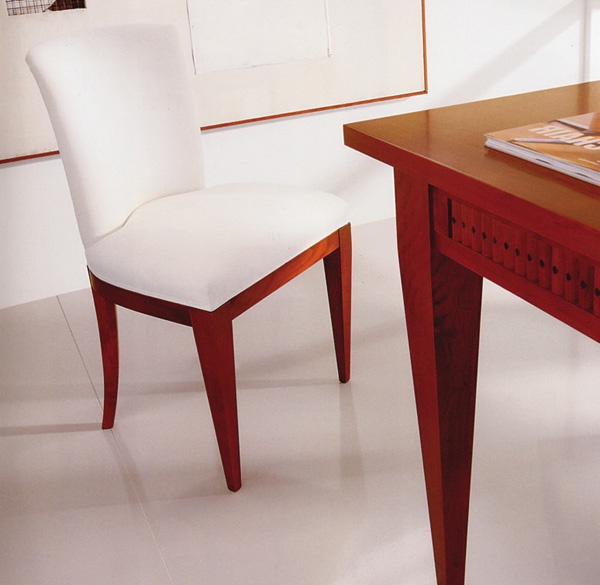 A chair from the Italian manufacturer Annibale Colombo. The chair is made from solid cherry and the upholstery is presented in a textile form. Possible variant in the leather upholstery. The color of this model of chair is white.