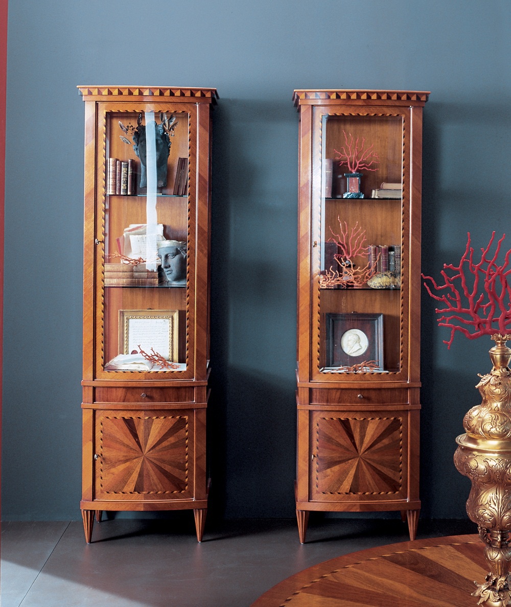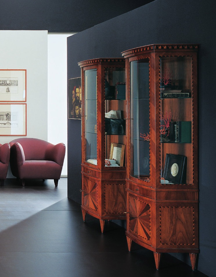showcase: walnut tree doors, shelves: glass finish: inlay |