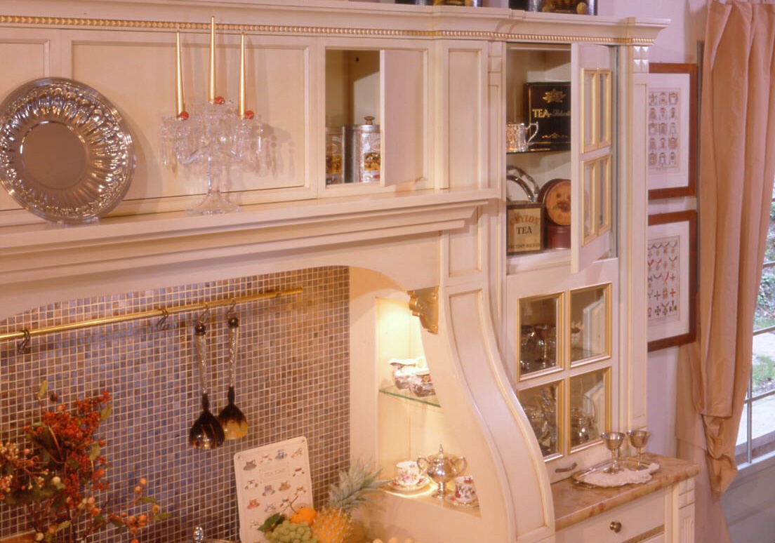 Kitchen set Victoria of Victoria collection from the Italian manufacturer Arca. Kitchen set made in a classic style, highlights the best moments and traditions from the history of England. For furniture used walnut wood and other softer woods. Work area - marble. The kitchen is characterized by the revival of ancient forms, combined with rich carving, ornament, and decoration in gold.