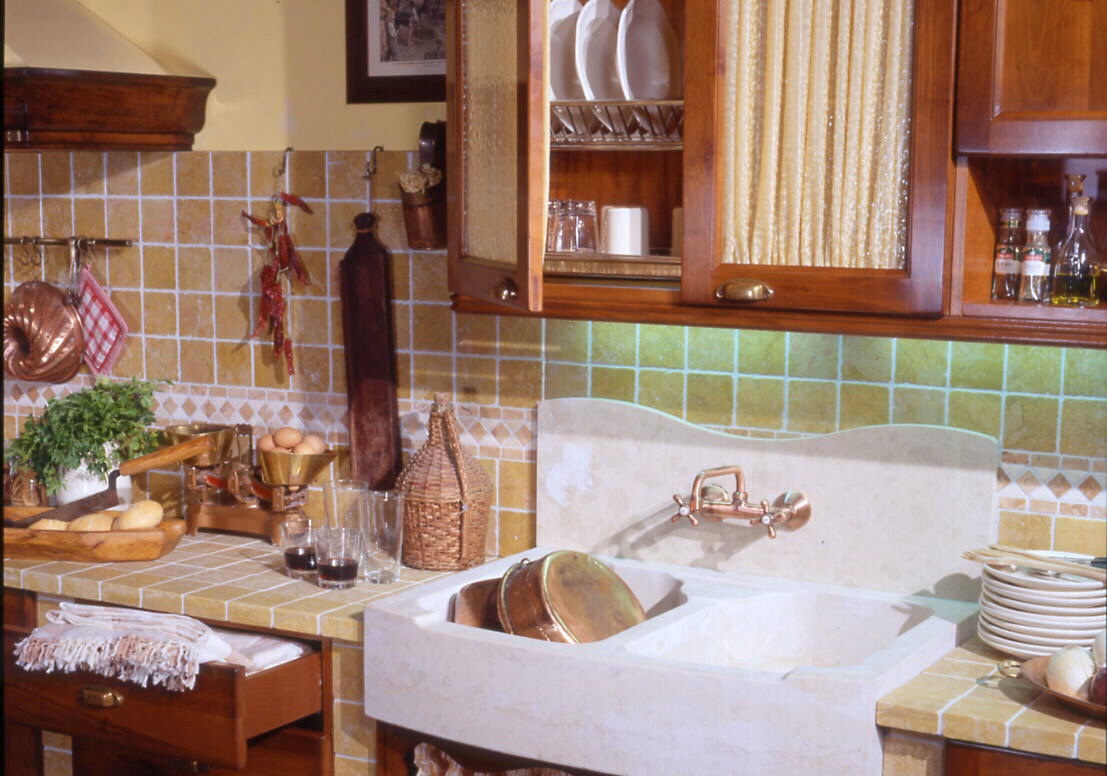 Kitchen Telaio Telaio collection from the Italian manufacturer Arca is an interaction between style and technology. For furniture used walnut and other woods. Variants of furnish of a facade: beeswax, natural materials. Working area - natural stone.