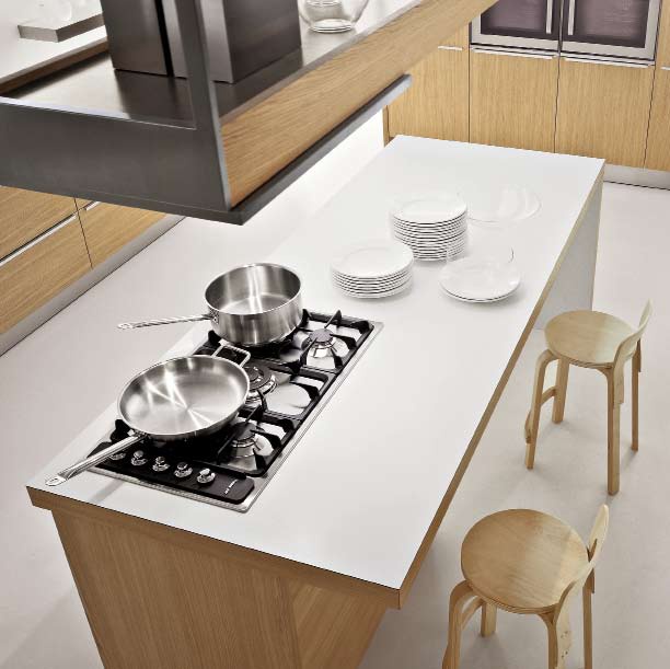 Kitchen with island from the Italian manufacturer Effeti. Kitchen in the style of hi-tech, high-tech style propagandizing aesthetics of the material, this style is for people young at heart. Functional kitchen, made from only the most modern materials. The working area is stainless steel.
