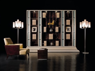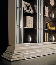 Wardrobe, from Italian producer tiga. The frame is made from solid wood. The model is based on a four-stepped base made of wood. Doors and shelves are made of glass. The Cabinet is adorned with decorative elements. The model is hand-made in art Deco style.