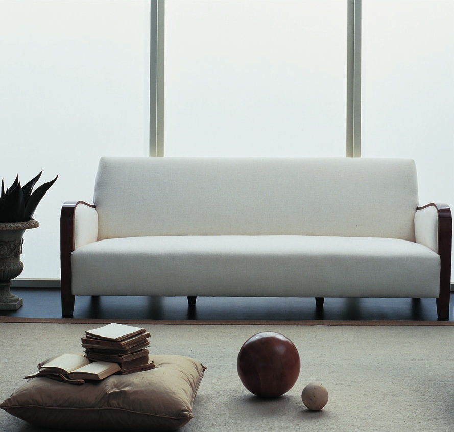 Three seater sofa from Italian manufacturer Annibale Colombo. The frame of the sofa is made from solid cherry. Upholstery textile or leather from the company portfolio. Color of sofa is white.