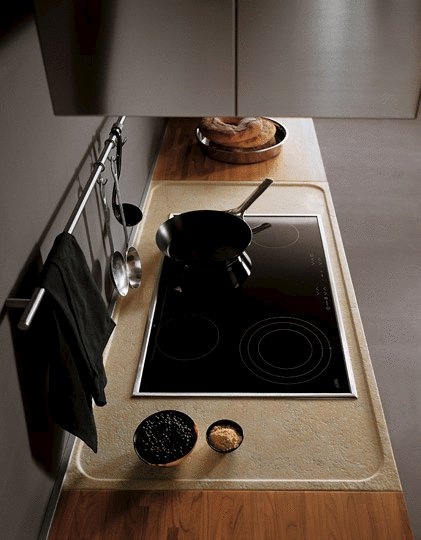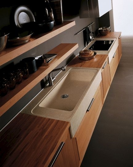 Kitchen from Italian manufacturer Effeti. Kitchen in a modern style, very functional kitchen. Made from solid beech or cherry. There is a possibility of tinting in all shades from the collection company. Wide handles of brushed stainless steel. The model can be supplemented by a system of storage and wide shelves.