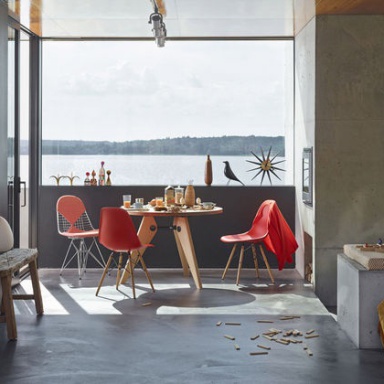 Eames chair from Swiss manufacturer Vitra. A multifunctional chair, a seat which in combination with many different databases to serve different purposes. A model with a complex and elegant design base is made of steel wire in combination with a metal or an array of maple, combining light, elegant shape with structural strength. Seat and back made of molded, mass-coloured polypropylene, following the contours of the human body. Offers a wide selection of colors and seat options base. This allows clients to specify an infinite number of different combinations and to use the chairs in a wide range of settings - from dining rooms, living rooms and terraces to office workspaces, restaurants and cafes.