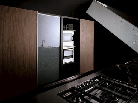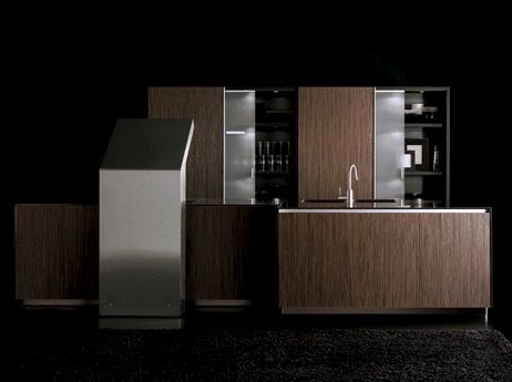 Kitchen with island Evoluzione from the Italian manufacturer Effeti. Kitchen in a modern style characterized by the search for the ideal proportions and new colours. The kitchen is for people young at heart, made only of the most modern materials. The facades are deaf or glazed. There is a possibility of tinting in all shades from the collection company. The model can be supplemented by the storage system.