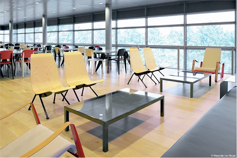 Chair Antony chair from Swiss manufacturer Vitra. The frame is made of steel sheets and tubes, finished in cream lacquer or black. Seat and back made of bentwood veneer in natural oak.