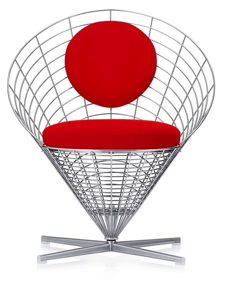 Chair Wire Cone Chair from Swiss manufacturer Vitra. The base is made of stainless steel. The frame is of Nickel-plated steel rods, fastened by welding. The seat cushion and the backrest are made with a filler of polyurethane foam and polyester fiber. Upholstery - textiles in different colours, from a range of companies.