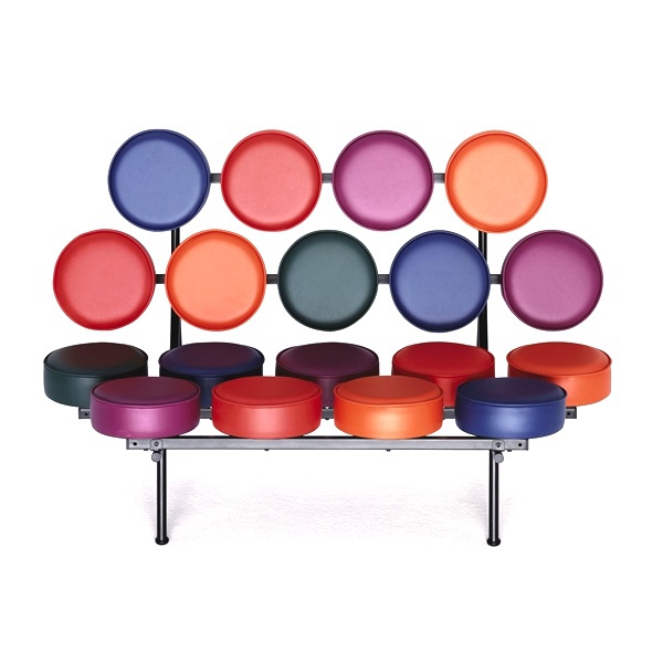 Sofa Marshmallow Sofa, from Swiss manufacturer Vitra. The frame is made of steel tubes with rectangular section, painted black. Seat and backrest consists of 18 cushions in vinyl upholstery fabric. Color options: red, orange, purple or blue. the model will perfectly complement the modern interior with its bright colors.