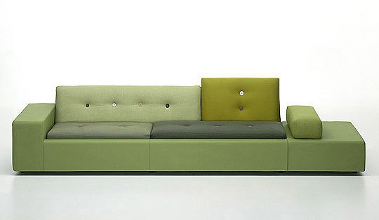 Sofa Polder Sofa XXL from Swiss manufacturer Vitra. The frame is made from solid wood. The elasticity of the seat attach with elastic straps. Filler - polyurethane foam. The detached position of the armrest can be changed. For upholstery, used five versions of fabrics of different texture and shades. The model will perfectly complement the modern interior living room.