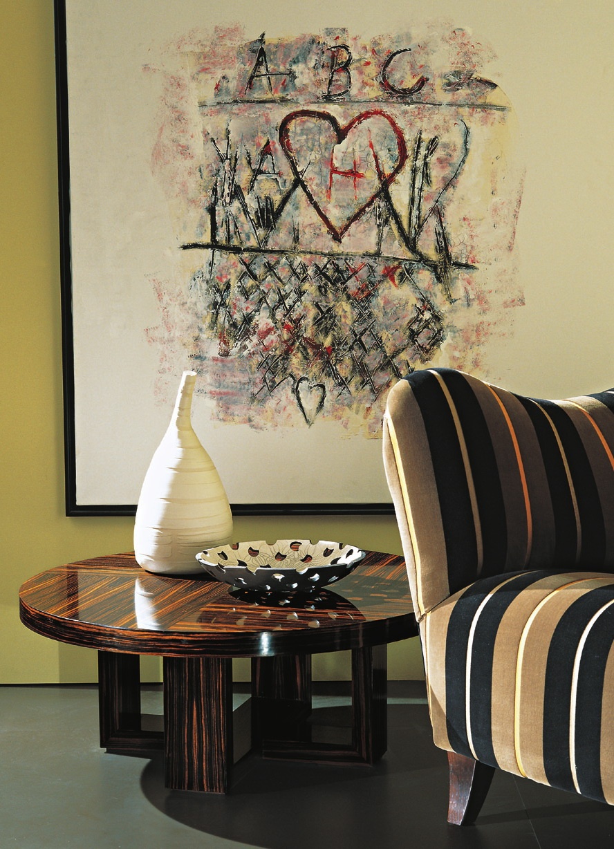 Coffee table by Italian manufacturer Annibale Colombo. The frame of the table is made of ebony. A high gloss finish. The color of this model coffee table natural wood color.