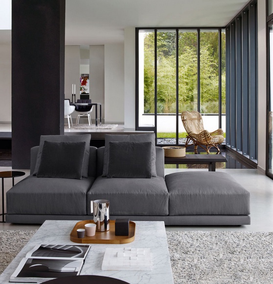 The Luis modular sofa from Italian manufacturer B&B Italia. Large selection of modular elements, size and layout options, as well as increased comfort allow you to solve any design problem and make Luis a classic sofa from Antonio Citterio, which is suitable to any type of space. The base is metal, inner frame made of steel tubes and steel profiles. Filler-holodnodeformirovannye elastic polyurethane foam and polyester fibre, upholstered in textile or leather. Removable cushions in a cotton bag filled with sterilized down. Soft cushions and armrests offer complete comfort. The choice of color in stock.