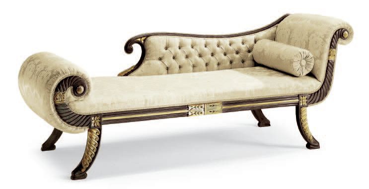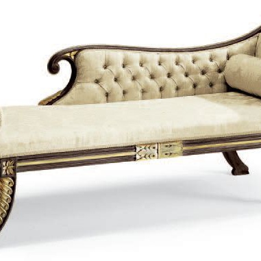 Deck chair from Italian producer Armando Rho. The frame is made from solid wood, upholstery - textiles from a range of campaigns. Finish - gold leaf. The design complements decorative pillow. Nice decorate living room in classic style. Colours in stock.