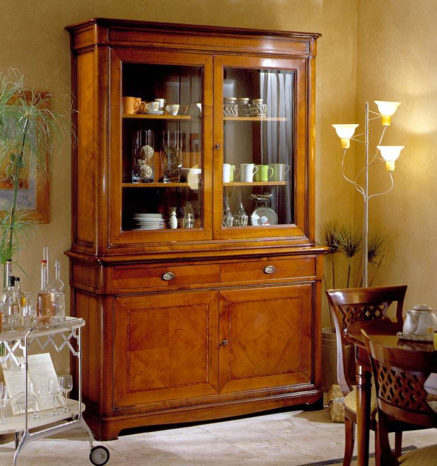 The buffet from the Italian manufacturer Busatto. The model is made in classic style. The frame is made of wood. Finish - gloss lacquer. Fold the upper cabinets are made of glass. Lower cabinets are deaf. Fittings made of metal. The model is characterized by simplicity of design and capacity.