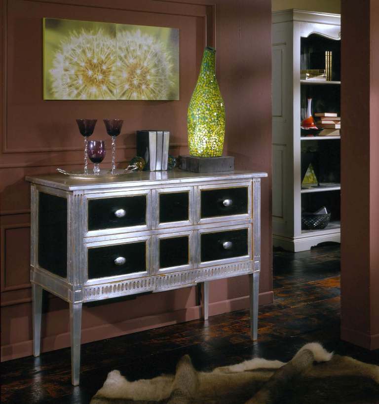 A chest of drawers from Italian manufacturer Busatto. Model long legs. Includes chest of drawers with round handles. Material - solid wood. Color finishes available in combinations of black and silver.