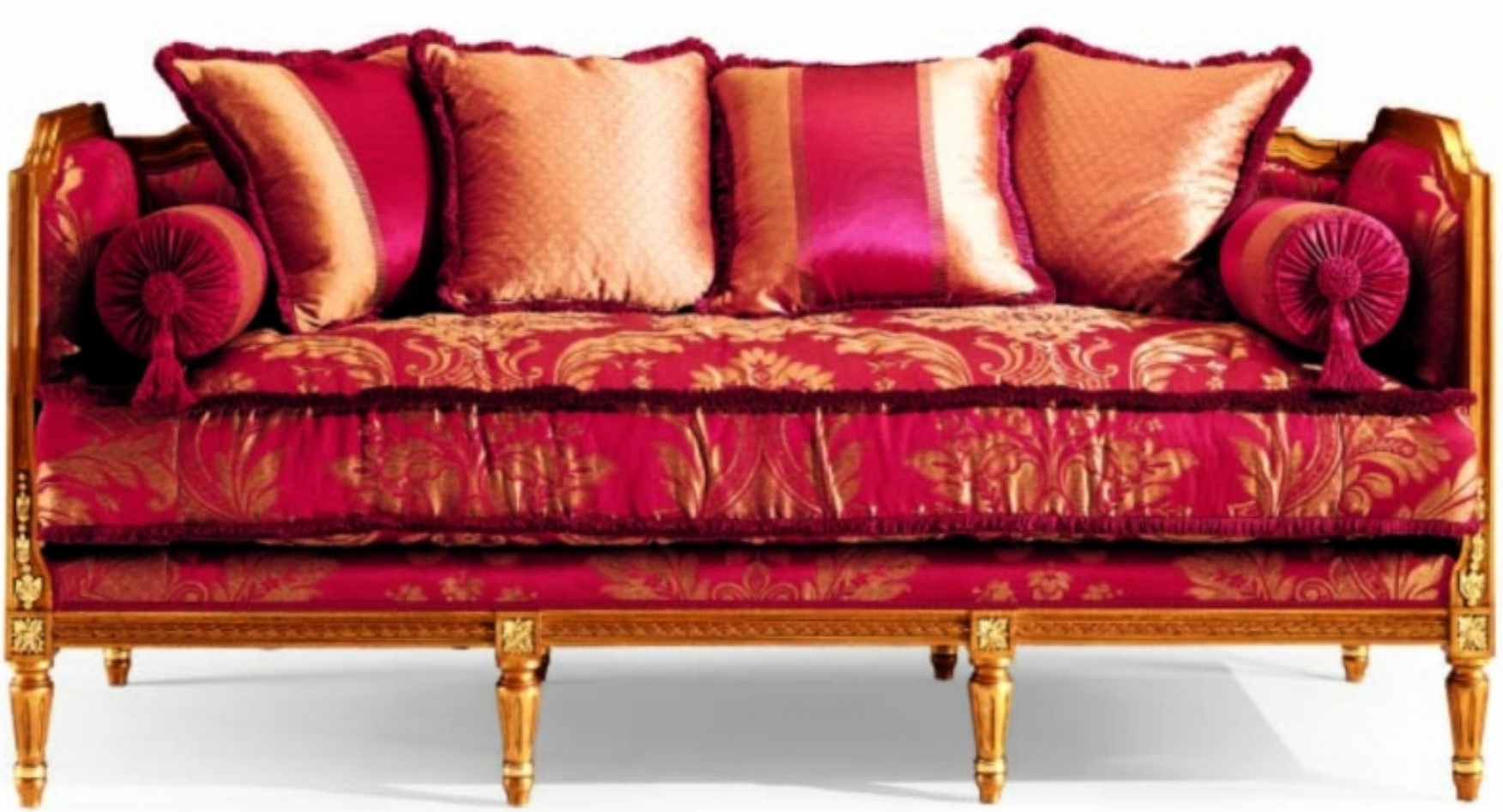 Sofa from Italian manufacturer Armando Rho. The frame is made from solid beech wood, filler - foam, upholstery - textiles from a range of campaigns. Finish options: carved/gilt. Double model is designed for the living room in a classic style. The design of complementary decorative pillows and cushions. Colours in stock.