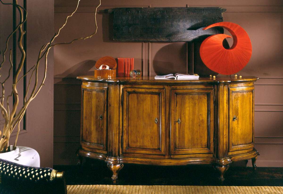 A chest of drawers from Italian manufacturer Busatto. The model consists of four sections with hinged doors. Legs low wide at the top. The frame is made of solid wood. Fittings made of metal. The model is distinguished by the roundness and smoothness of lines. Made chest in a classic style.