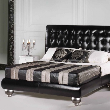 Afrodite bed by Italian manufacturer Epoque. The frame is made from solid wood. Filler - foam, upholstery - leather or textile. Double model with a high and padded headboard. Product color black.