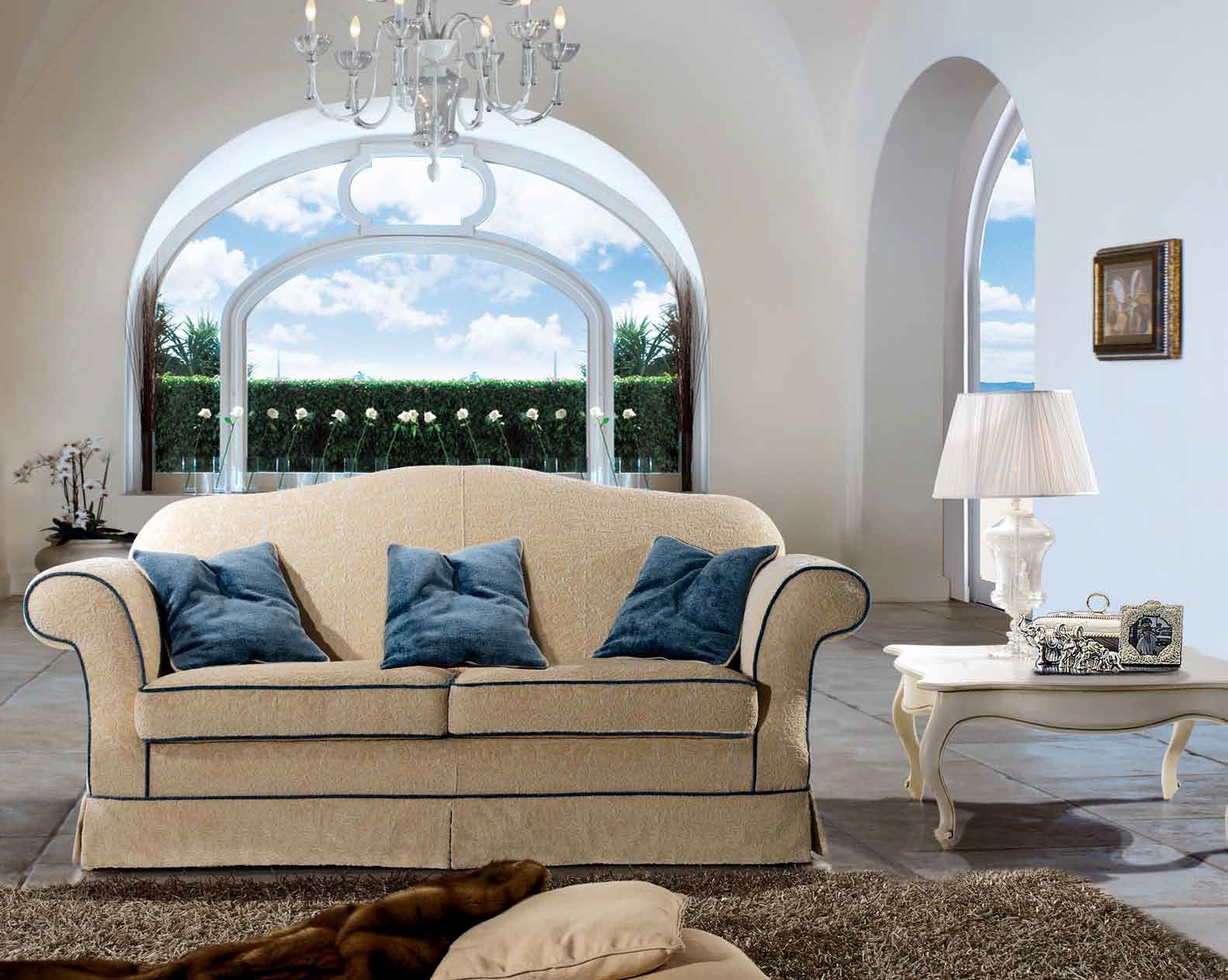 A double sofa from Italian manufacturer Epoque. The frame is made from solid wood, filler - foam, upholstery - textiles from a range of campaigns. The model will decorate the living room in a modern style. The design of complementary decorative pillows. Colours in stock.