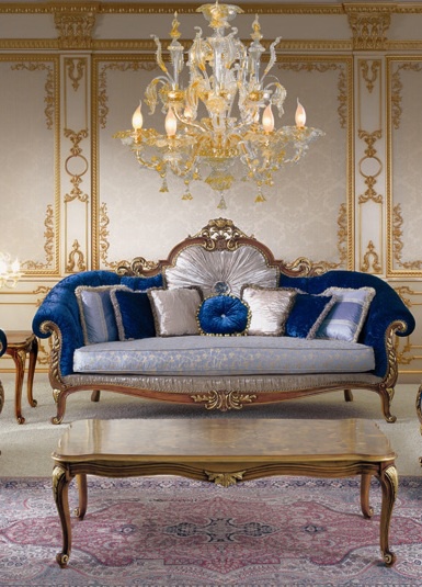 Three seater sofa from Italian producer Carlo Asnaghi. The model is made on a frame of solid wood. The back is curly shape carved handmade. The armrests are rounded off form. Textile upholstery is offered from the company portfolio. Complement model a variety of pillows of different shapes and sizes. The sofa is made in a classic style.