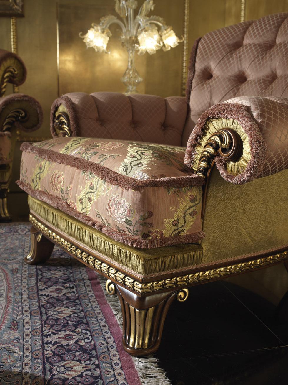 The chair from Italian producer Carlo Asnaghi. Model with a hidden frame. The legs are made of wood. Back and seat covered with soft textile. Colors to choose from a range of companies. The back is decorated with ornamental stitch-Capito. The model is made in classic style.