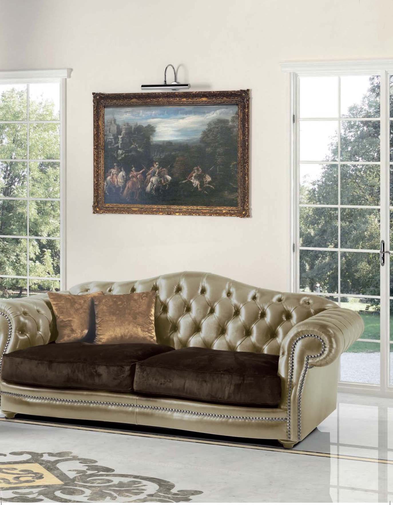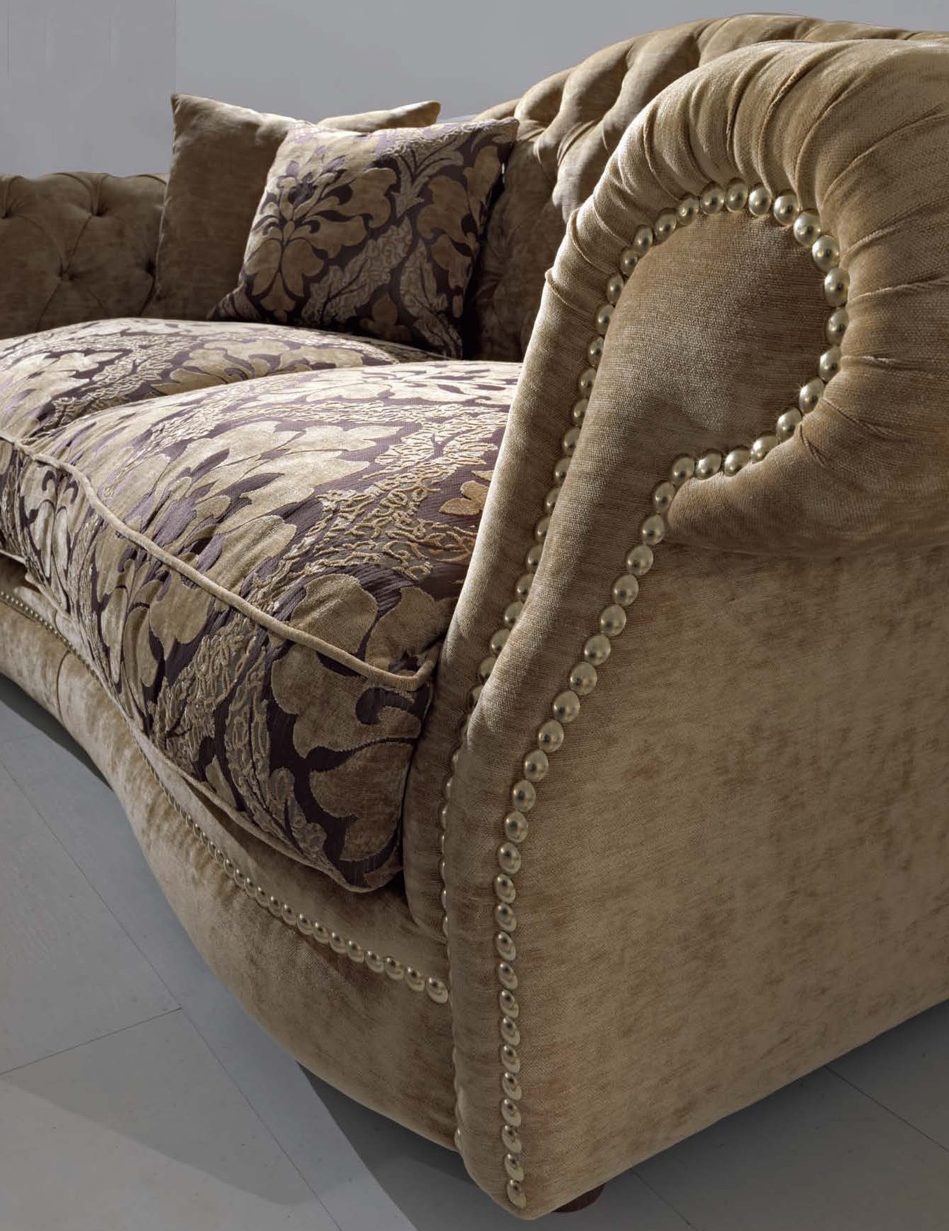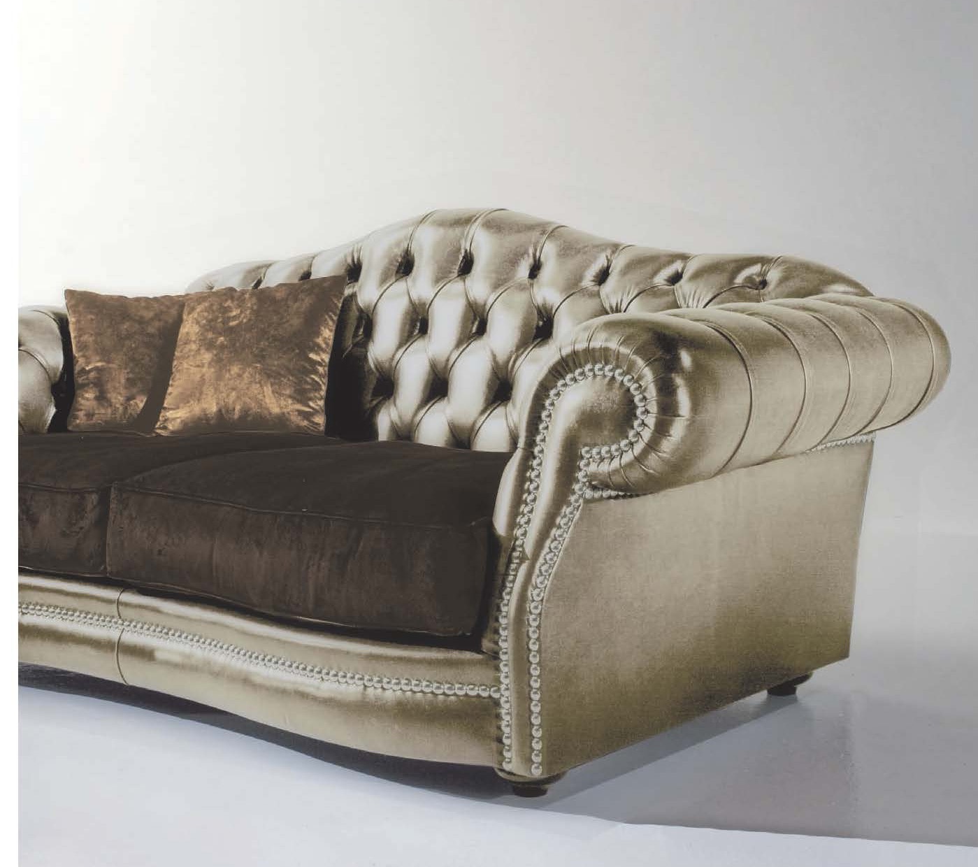 Double sofa Lord from the Italian manufacturer Asnaghi (Made in Italy), the collection Classic. Sofa upholstered in fabric or leather. The frame is made of wood. Filler - polyurethane foam. The back is decorated with screed Capito, the design of complementary decorative furniture studs.