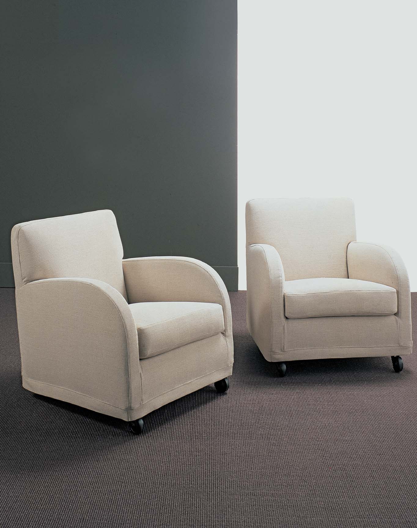A chair on wheels from the Boss Italian manufacturer Asnaghi (Made in Italy). The frame is made of wood. Upholstery - leather or fabric from the company portfolio. Filler - polyurethane foam. The model is made in a modern style, the wheels make it easy to move the chair into different zones your living room.