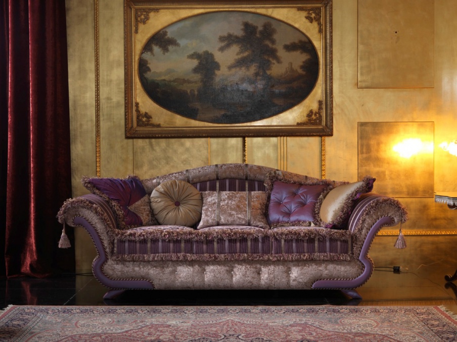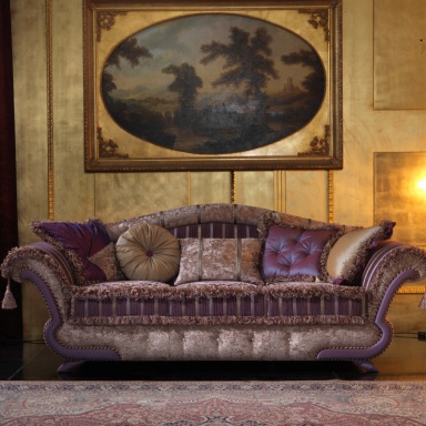 Three seater sofa from Italian producer Carlo Asnaghi. The frame model is completely hidden. Upholstery textile is proposed. Color option to choose from a range of companies. The originality of the model gives the rounded armrests and back. Sofa decorated with pillows of different shapes and sizes.